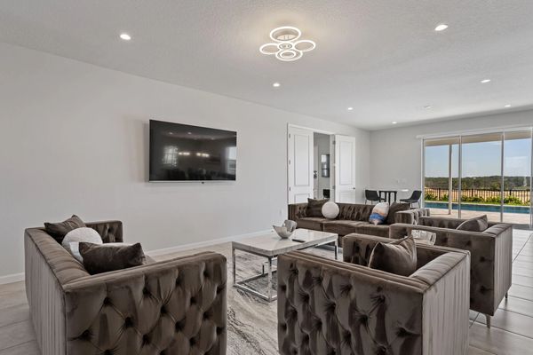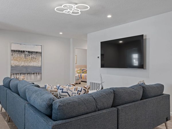 The living room is adorned with plush, cozy chairs and sofas, and features a state-of-the-art flat screen smart TV with cable and high-speed internet access. In fact, every bedroom in the house is equipped with a smart TV! There is a great Loft lounge area with a 75" TV for great family time!